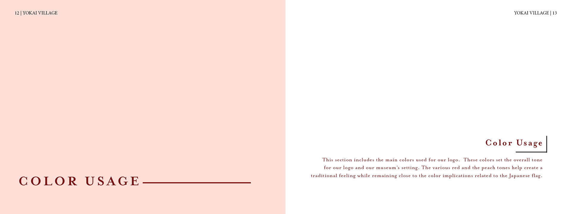 The assignment to create visual branding for a fictional museum or location. This is branding for an exhibition called Yokai Village. Brand guidelines were developed along with consumer good products and staff stationary.